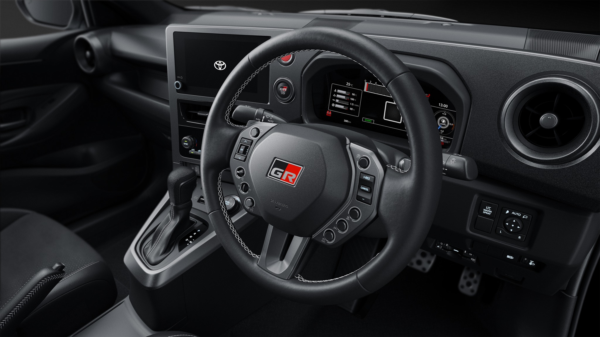 操作性を追求しステアリングホイールを新意匠デザインへと変更し、それぞれのスイッチを独立させた配置にすることで操作性を向上。また持ち替えなしでステアリング操作を行えるよう小径化と、コーナリング時の押し操作で手のひらにフィットする左右グリップ形状への変更。