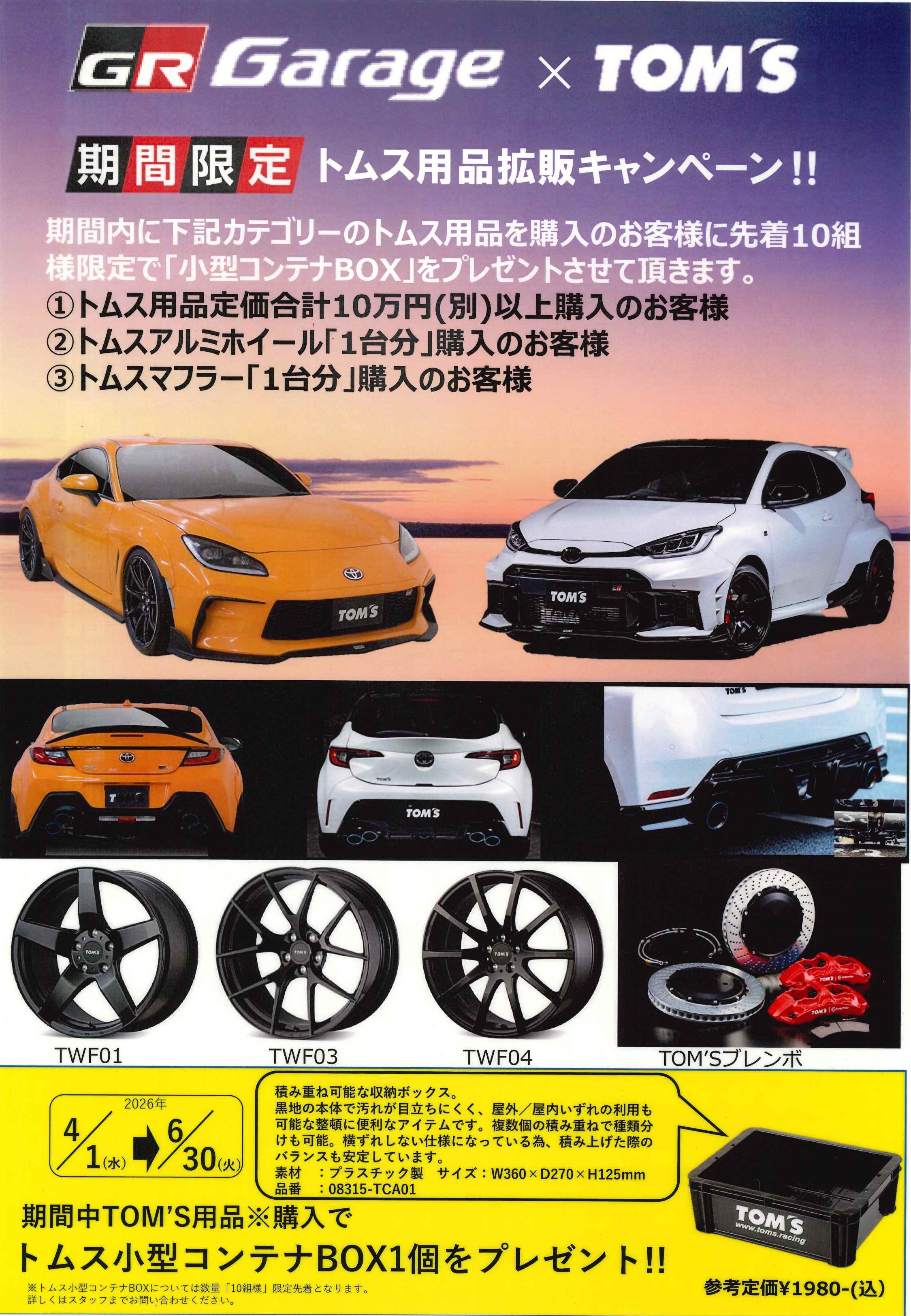 今回は期間限定 トムス用品拡販キャンペーンのご案内です!